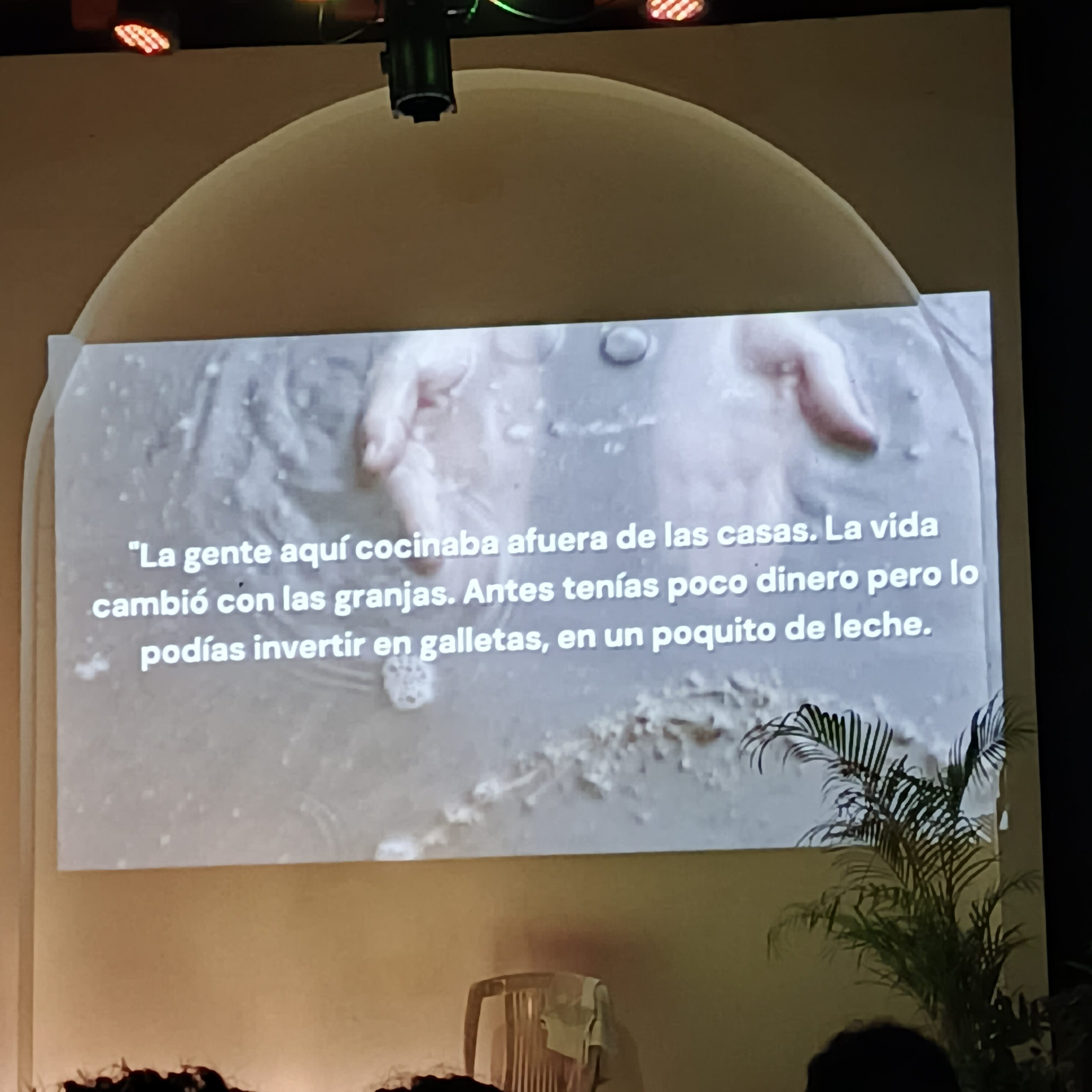 La puesta en escena apuesta por lo esencial: una escenografía sencilla, útil, que nunca compite con la palabra sino que la sostiene. Las proyecciones audiovisuales son un acierto: imágenes y datos duros sobre la masacre ecológica nos golpean sin ambages, mientras la voz de Mendoza guía la reflexión. En este juego visual-sonoro, la música y los efectos cumplen una función más que decorativa: marcan las transiciones, intensifican atmósferas y permiten que el espectador se hunda de lleno en la narrativa emocional y política.