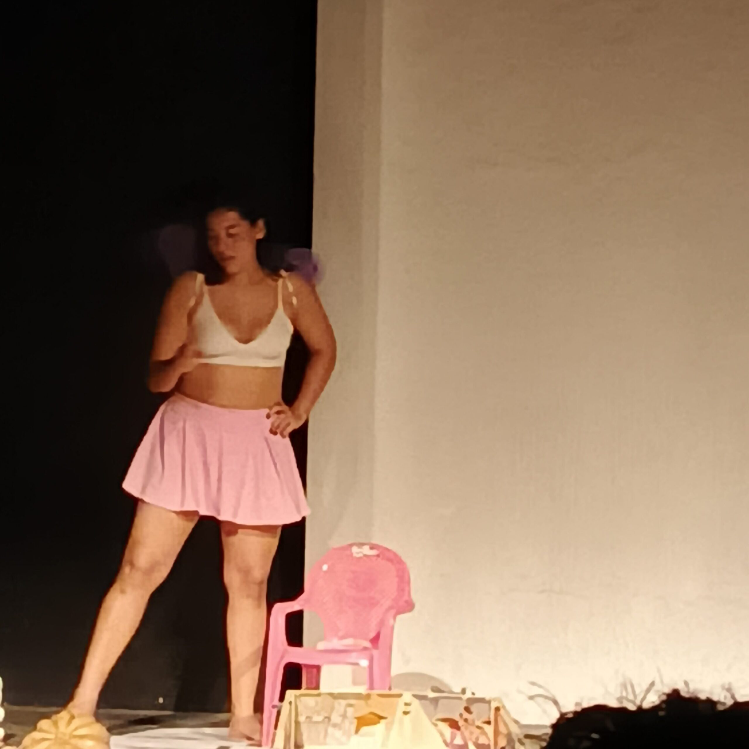 En Un lugar olvidado por dios que sigue bailando y riendo, Mariana Mendoza —beneficiaria del PECDA Campeche— se entrega sin reservas como autora, directora y protagonista de una pieza que es tanto testimonio como grito de resistencia. Lo que presenciamos el pasado 29 de marzo en El Claustro fue una muestra en proceso, pero ya poderosa en su forma y contenido, de cara a su inminente estreno completo el 8 de junio de 2025.